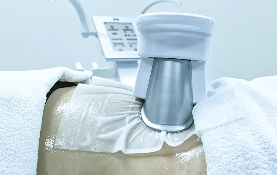 Sistema que atua por meio do resfriamento (extração de temperatura) em conjunto a um sistema de sucção a vácuo assistido, gerando cristalização e subsequente morte das células do tecido adiposo.