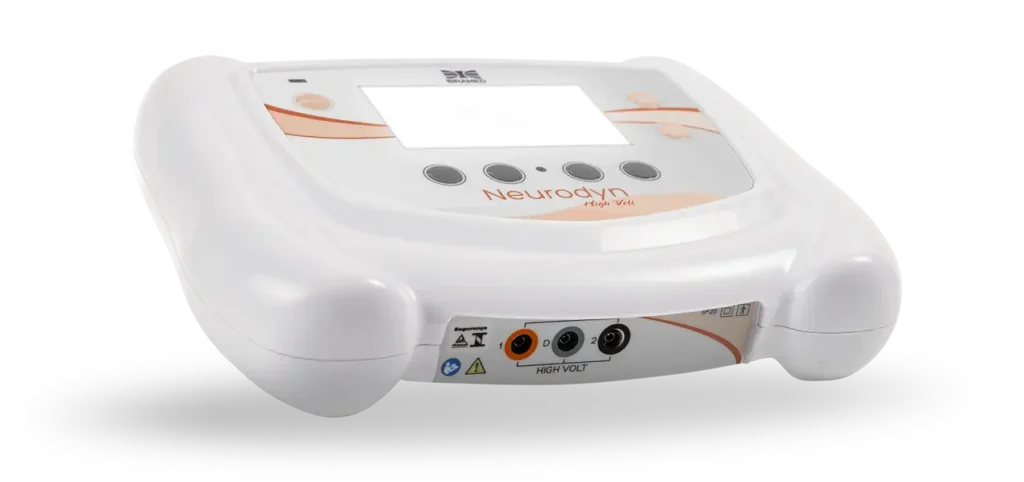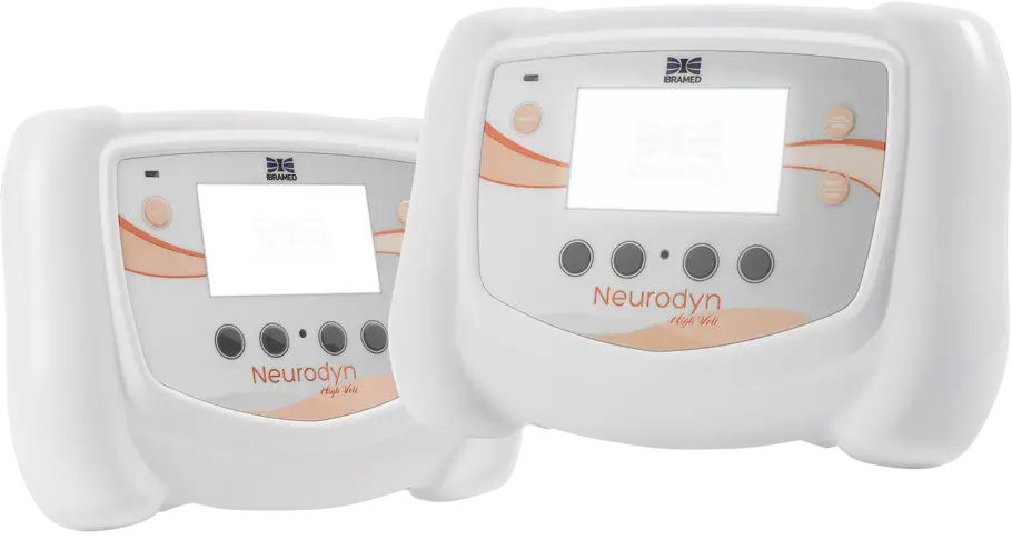 O novo NEURODYN HIGH VOLT é um equipamento de estimulação neuromuscular transcutâneo com dois canais de controle independentes de intensidade para tratamentos com a Corrente CPAV – Corrente Pulsada de Alta Voltagem (High Volt) e para a Corrente Galvânica.