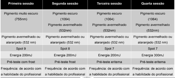 O número varia conforme cor, tipo e profundidade da tinta. Em média, são necessárias de 4 a 10 sessões, com intervalo de em média 45 dias entre cada uma.